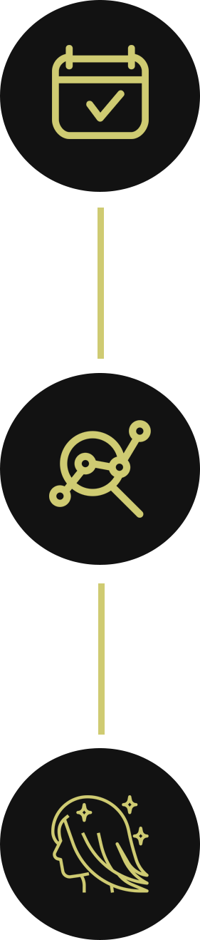 A Avaliação Personalizada é uma consultoria completa onde vamos mapear a saúde do seu cabelo e criar juntas o plano perfeito para sua transformação. É o fim das dúvidas e o início da sua confiança.